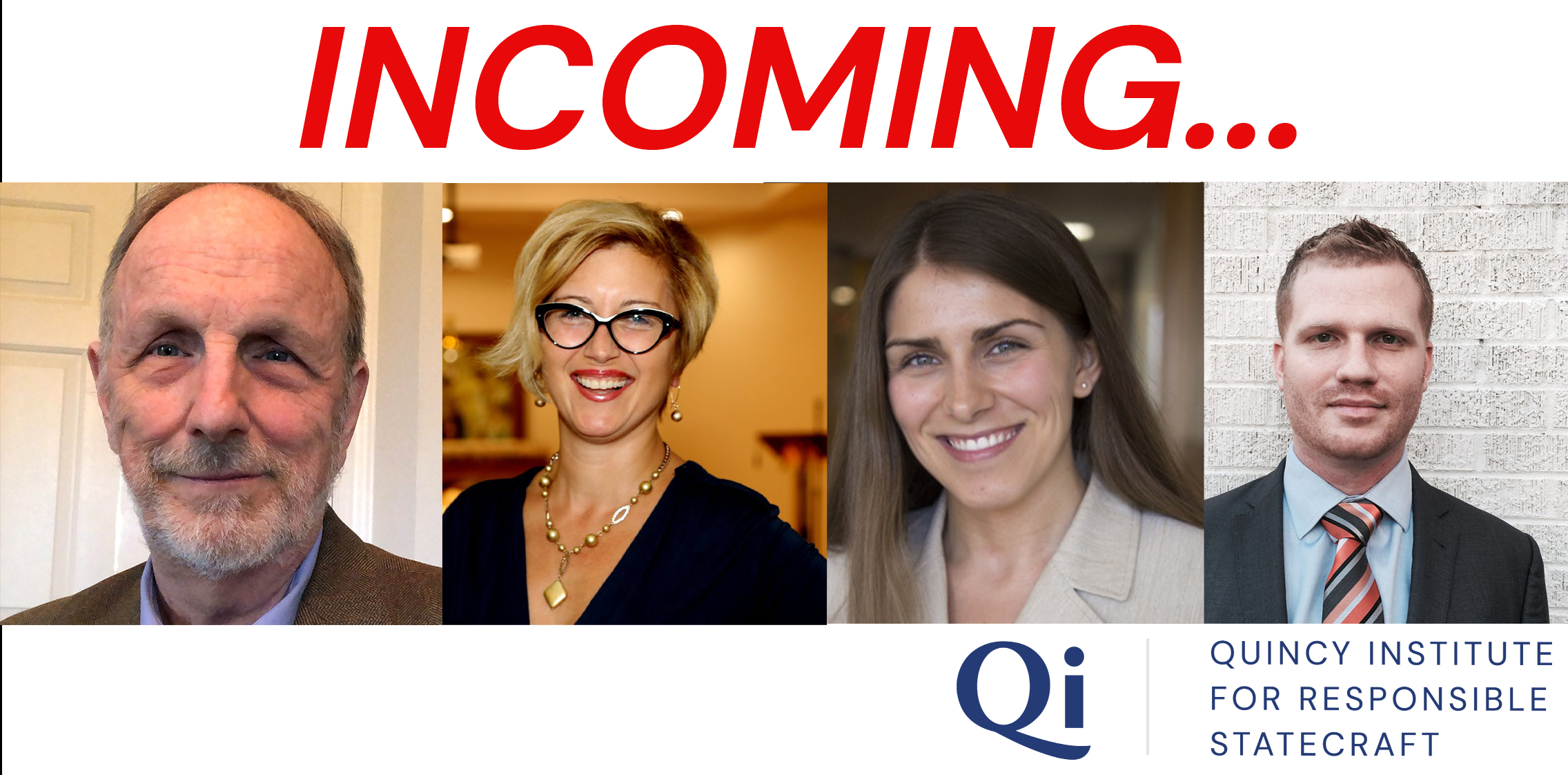 WASHINGTON, DC — The Quincy Institute for Responsible Statecraft (QI) announced four additions to its team that will provide scholarship to challenge the emerging militarized competition with China, lead efforts to responsibly withdraw from Afghanistan and bring a powerful new conservative voice into the organization. The new hires bring the total number of permanent QI staff to 19, marking a 60+ percent staffing increase in the less than a year since the organization was launched.