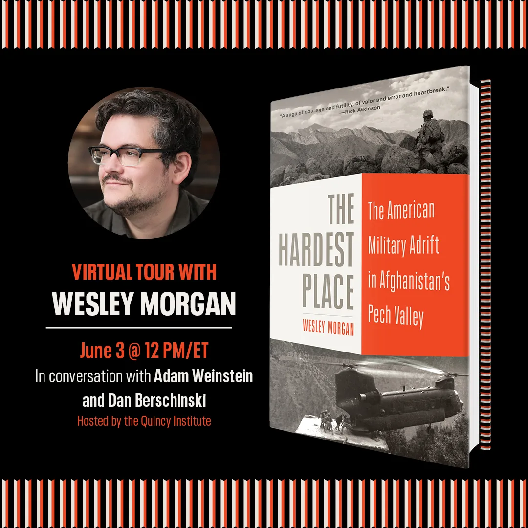 Wesley Morgan first visited the Pech in 2010, as a college student embedded with U.S. military units as a freelance journalist. His meticulously researched book,The Hardest Place: The American Military Adrift in Afghanistan’s Pech Valley, functions as both a first-hand account of a rugged battlespace and a detailed history of the interactions between the Pech River Valley’s residents and the foreign soldiers, terrorist groups, and Taliban that passed through. The Hardest Place documents a mission that came to epitomize the dysfunction, unclear objectives, and mission creep of America’s two-decade war in Afghanistan. Join a discussion with the author that delves into the experiences and dysfunctions of the U.S. mission in Afghanistan. He will be joined by Dan Berschinski who served as a U.S. Army officer in Afghanistan’s Arghandab River Valley in Kandahar province. The conversation will be moderated by QI’s Adam Weinstein who served as a U.S. Marine in Afghanistan’s Uruzgan province.