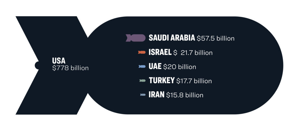 SIPRI does not have data for Qatar and UAE, which are calculated separately using the CIA World Factbook and the 2017 estimate.