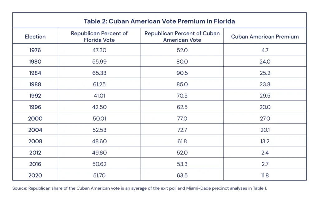 Equis Research, Florida: Deep-Dive on the Cuban Vote, July 14, 2020, https://equisresearch.medium.com/florida-deep-dive-on-the-cuban-vote-b5f66b0d9483. ↩