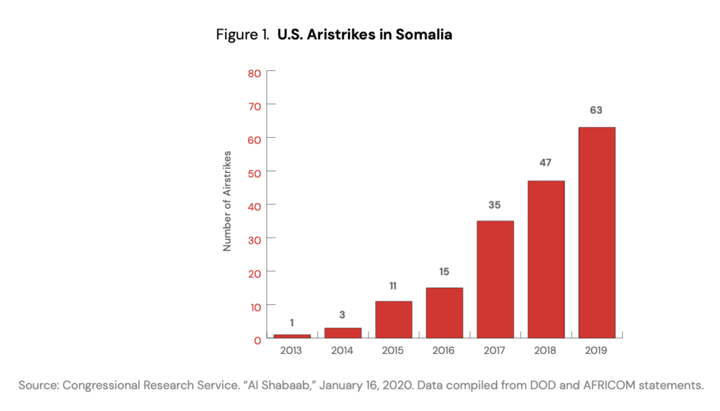 Critics of this approach will argue that stepping down U.S. military engagement could lead other military interventions to wind down, too—in particular the regional peacekeeping African Union Mission in Somalia (AMISOM) — and that this could open the door to a resurgence of al–Shabaab that could ultimately defeat the Federal Government of Somalia (FGS). Al–Shabaab is a bad actor, and the insurgency has caused significant public harm, including an estimated 3,000 civilian casualties from 2017 to 2019. But this fact alone is not enough to justify continuing U.S. participation in war activities against it, with the accompanying cost and risks to American interests, as well as the risk that the use of lethal force by the United States could be compounding the conflict further by aggravating local grievances and propping up an ineffective government rife with corruption.