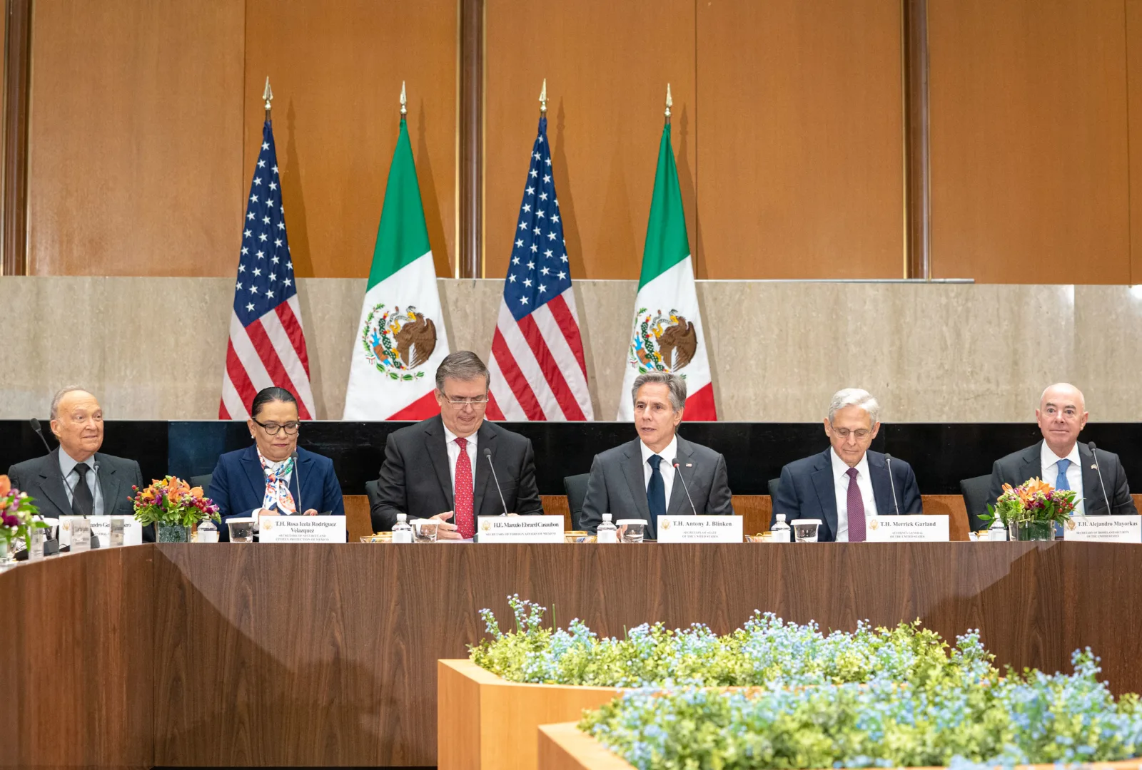 The White House, “Joint Statement: 2022 U.S.-Mexico High-Level Security Dialogue,” October 8, 2021 , https://www.whitehouse.gov/briefing-room/statements-releases/2021/10/08/joint-statement-u-s-mexico-high-level-security-dialogue/; U.S. Department of State, “Summary of the Action Plan for U.S.-Mexico Bicentennial Framework for Security, Public Health, and Safe Communities,” January 31, 2022, https://www.state.gov/summary-of-the-action-plan-for-u-s-mexico-bicentennial-framework-for-security-public-health-and-safe-communities/; Antony Blinken, “Remarks at the U.S.–Mexico High-Level Security Dialogue,” October 13, 2022, https://www.state.gov/remarks-at-the-u-s-mexico-high-level-security-dialogue/ ↩