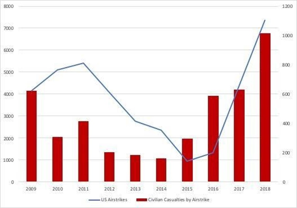 Source: United Nations Assistance Mission in Afghanistan, “Quarterly Report on the Protection of Civilians in Armed Conflict: 1 January to 30 September 2019,” United Nations, October 17, 2019. United States Air Forces Central Command Combined Air Operations Center, “Combined Forces Air Component Commander 2013-2019 Airpower Statistics,” December 31, 2019.