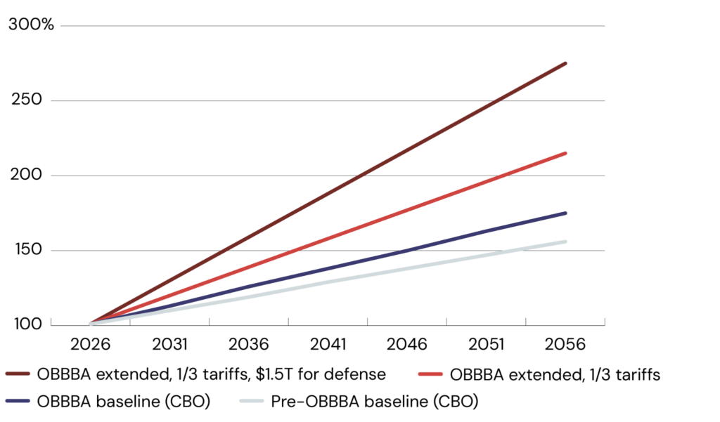 Figure 4: US Debt–to–GDP Ratio, 2026–56